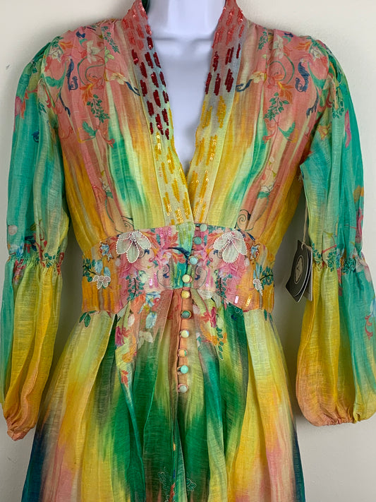 La Fuori Multi Puff Sleeve Dress | SZ S | NWT