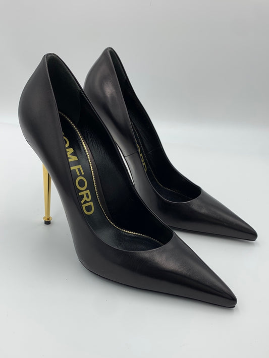 Tom Ford Black Leather Gold Heel Pumps | SZ 40
